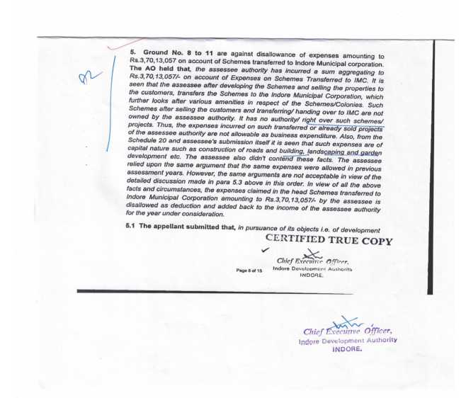 15. The assessee debited to its P&L A/c certain expenses incurred by it for the Schemes transferred to Indore Municipal Corporation (IMC) and claimed deduction under the heading “IMC Transfer Expenses”. The AO disallowed such expenses but in first-appeal, the CIT(A) reversed AO’s action and deleted disallowance. For this issue, we straightaway refer the order passed by Ld. CIT(A) which vehemently narrates the premise on which the AO made disallowance, the assessee’s submissions and the reasoning for reversing AO’s action as under: