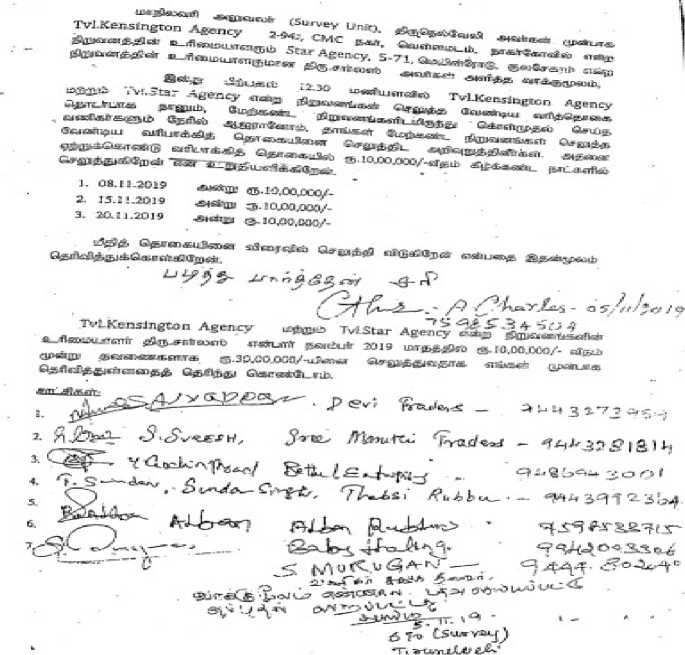 2. Pursuant to statement obtained from one Charles, the Proprietor of Tvl.Kensington Agency and Star Agency on 05.11.2019, the said supplier had undertaken to pay a sum of Rs.30,00,000/- on the dates mentioned therein. The said statement of Charles, Proprietor of Tvl.Kensington Agency reads as under:-