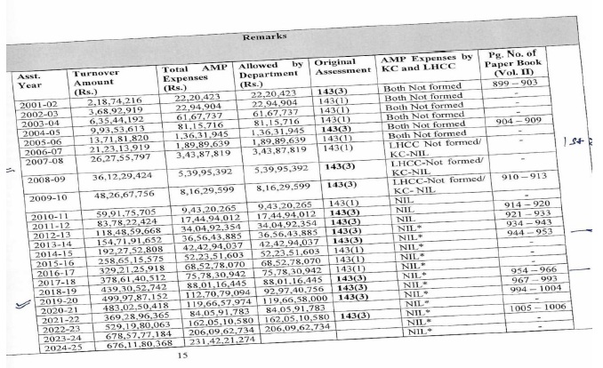 | (d) | | LHCC working under the very same business model has been showing consistent growth in net profit ratio even after expiry of its tax holiday under section 801C of the Act w.e.f., assessment year 2020-21, resulting in payment of significant income tax, as tabulated herein below (since KC has already closed its business w.e.f May-2017, its results are not being compared): |