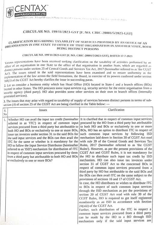 Circular No.199/11/2023-GST dated 17.07.2023 reads as follows: