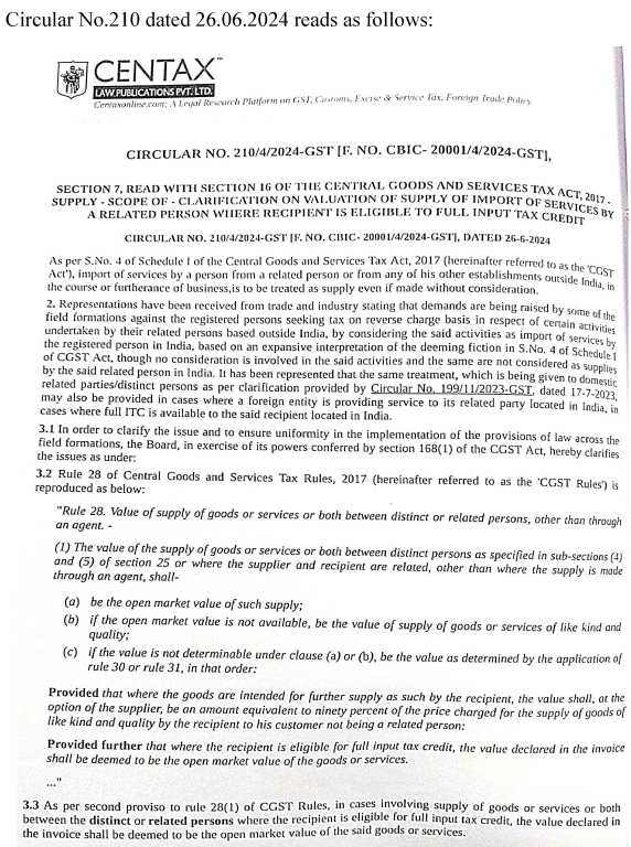 5. The writ petitioner submitted their reply. In their reply, the petitioner placed reliance on 2 circulars i.e., Circular No.199/11/2023-GST dated 17.07.2023 and Circular No.210/4/2024-GST dated 26.06.2024. Rule 28 of CGST Rules, 2017 reads as follows: