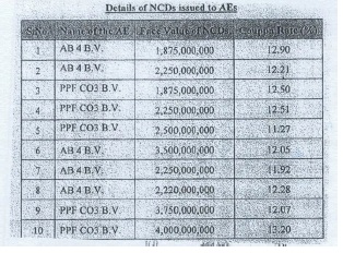 | Sr. No. | Name of the AE | Face value of NCDs | Coupon rate percentage |