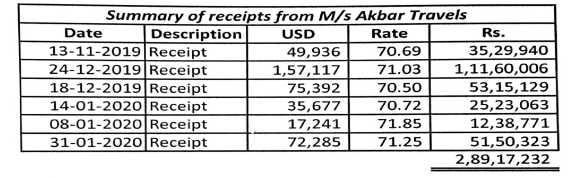 15. We have given a thoughtful consideration to the orders of the authorities below. Exhibit 132 of the paper book is the room rent agreement effective from 05/11/2019 to 31/03/2020, between the assessee and the travel agent Akbar Travels, UAE. Exhibit 137 is the statement of accounts of Akbar Travels, UAE, and page 283 as the summary of receipts from Akbar Travels, UAE, for the year under consideration, which is as under:-