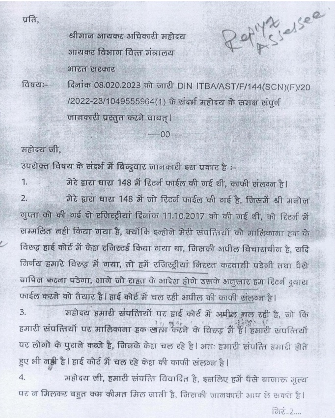 2. The background facts leading to present appeal are such that the AO, on the basis of information available in INSIGHT Portal of Income-tax Department revealing certain sale transactions of immovable properties done by assessee during the previous year 2017-18 relevant to AY 2018-19, issued notice u/s 148A(b) which remained uncompiled by assessee. Thereafter, the AO issued notice u/s 148 for making assessment u/s 147, followed by notices u/s 142(1) and show-cause notices. However, all notices remained uncompiled by assessee except that the assessee made limited compliance by way of filing return of income on 07.02.2022 in response to notice u/s 148 and filing a part-reply on 12.03.2023/14.03.2023 [Para 2 of assessment-order]. In the return of income so filed, the assessee declared aggregate sale proceed of Rs. 4,50,000/- of three (3) properties, cost of acquisition/ improvement of Rs. 26,49,806/- and taxable long-term capital gain of Rs. (-) 21,99,806/-. Further in his reply filed to AO, the assessee submitted that the properties sold by him were disputed and having litigation. The reply of assessee is extracted by AO in Para 6 of assessmentorder and the same is also re-produced by us in subsequent Para No. 5 of this order. As against assessee’s submission, the AO assessed aggregate sale consideration of five (5) properties amounting to Rs. 1,29,73,500/- as taxable long-term capital gain without giving any deduction of cost and completed assessment. Aggrieved, the assessee carried matter in first-appeal but the CIT(A) did not grant relief for lack of evidences/documents. Now, the assessee has come in next appeal before us.