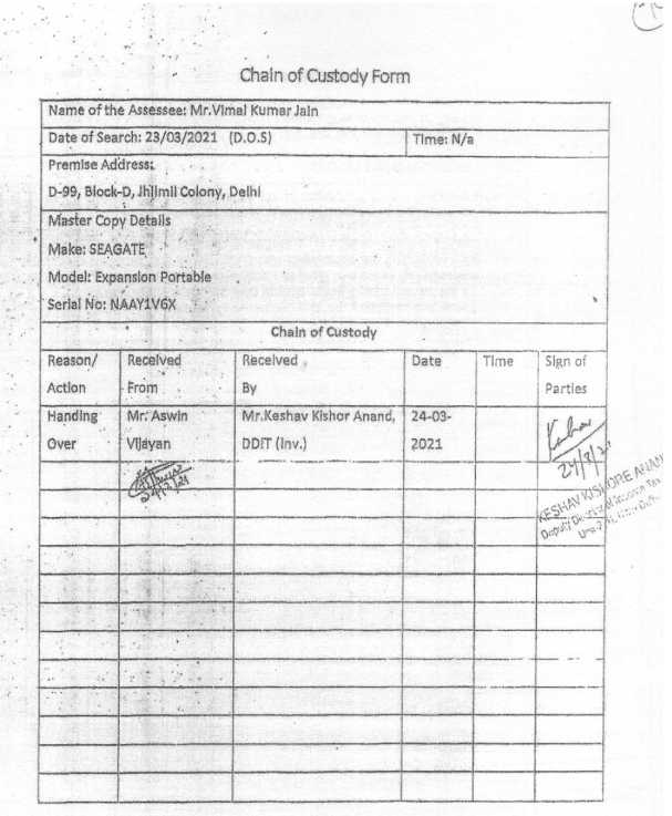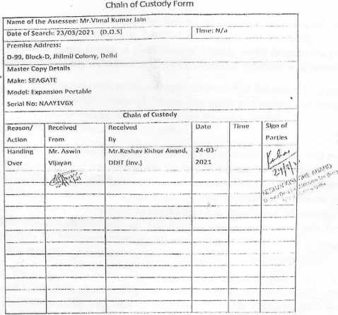 35. Thus, the discussion establishes that it is only subsequently after the search were concluded the devices or their working copy were analyzed and using necessary software extraction of electronic evidences was done which were then confronted by Mr. Honey PatodiShri, Assistant Director of Income-tax (Inv.), Unit-1(2), New Delhi. However, how the digital evidences reached him were to be established by the chain of custody form, but there is no record of same. Infact, the Bench had gone into the issue more inquisitively calling for chain of custody form and a letter dated 25.11.2021 written by Honey Patodi was placed on record and for convenience, we reproduce the same below:-