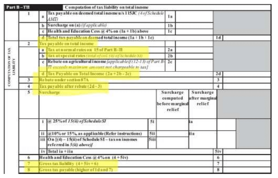 iv) compute the tax liability on the total income as per the rates prescribed by the Finance Act of each year and/or as per the special rates prescribed and compute the ‘tax on total income’;