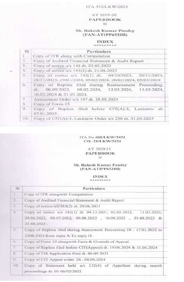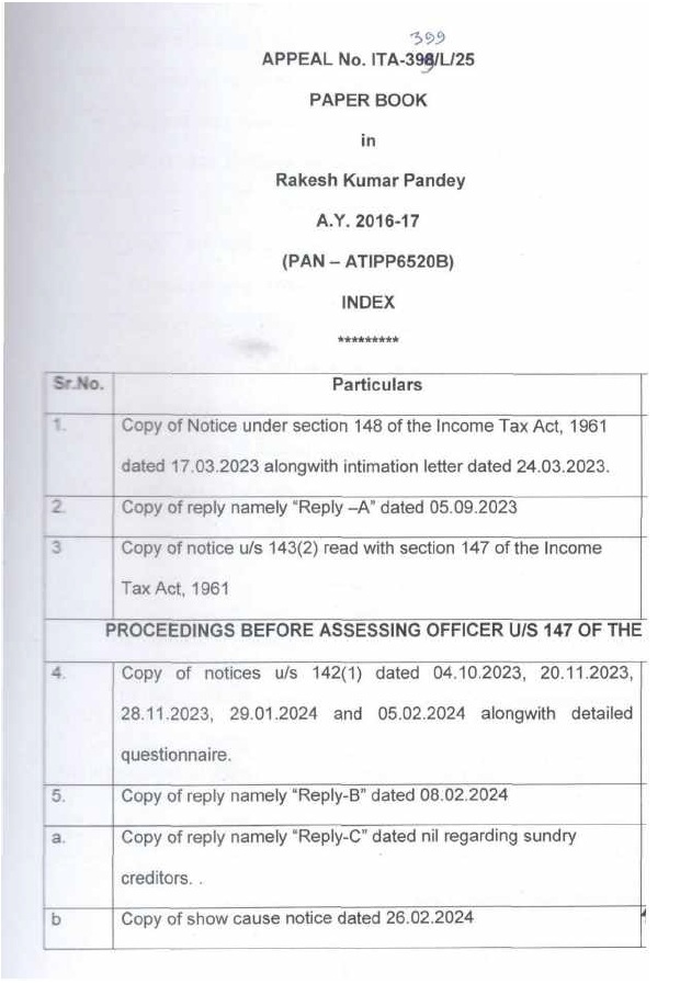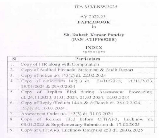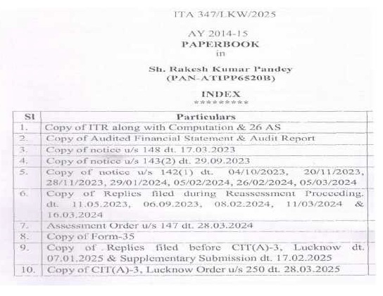 (B) In the course of appellate proceedings in Income Tax Appellate Tribunal, (“ITAT” for short), following paper book were filed from the assessee’s side: