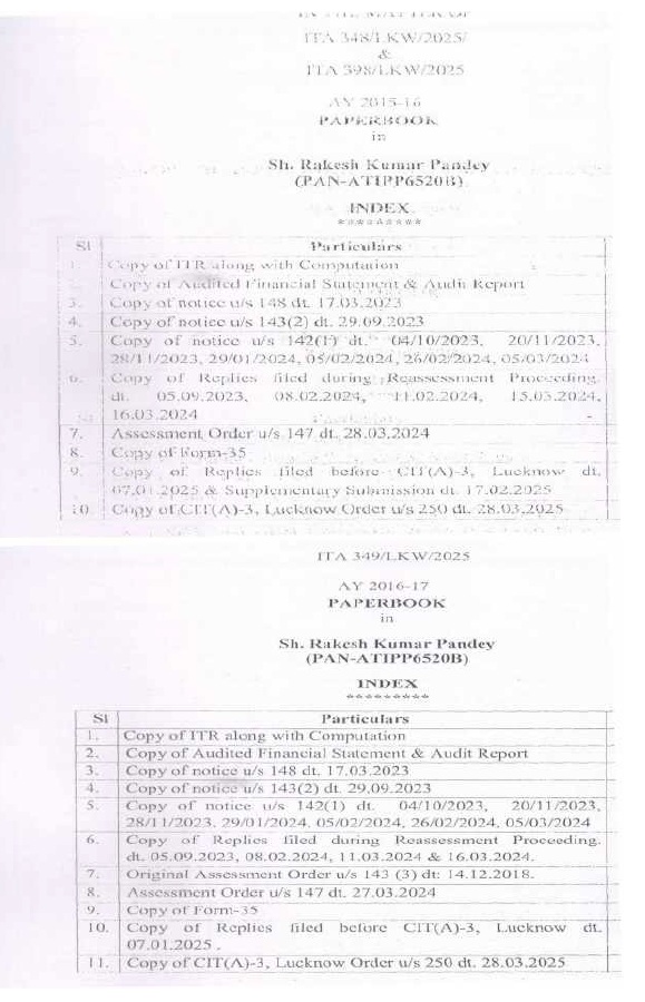| 3. | | ITA No 349/LKW/2025 (A) & 399/LKW/2025 (D) AY 2016-17 |