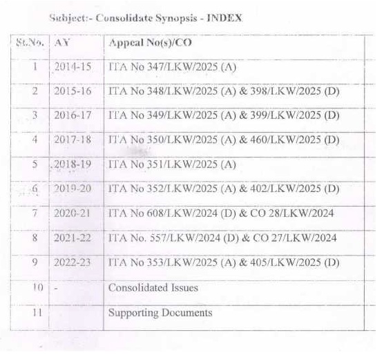 (B.1) Further, a consolidated synopsis, common for all the appeals and COs before us, was filed from assessee’s side; which is reproduced below for the ease of reference: