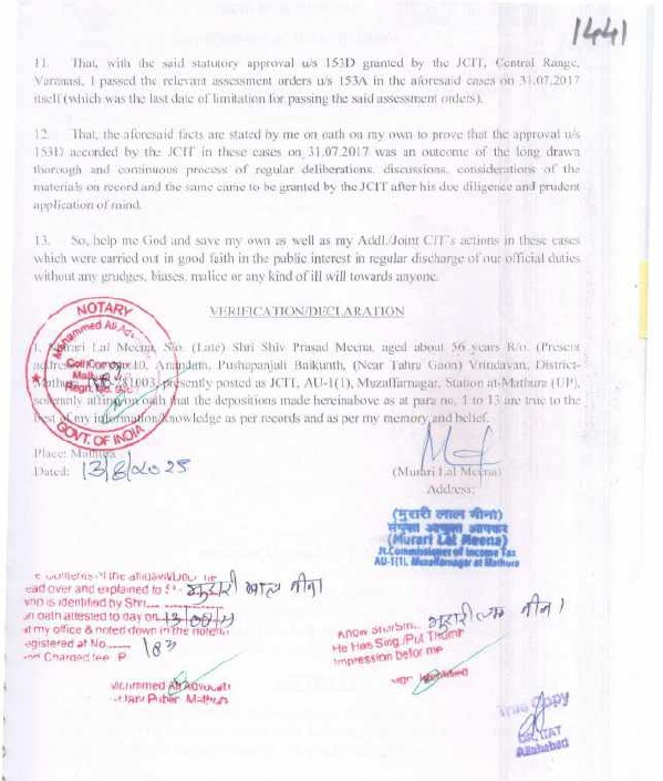 5.4 Reliance was also placed on the order dated 07.10.2021 of the Lucknow Bench of the Tribunal in the case of Shri Subodh Agarwal v. DCIT, Kanpur for assessment year 2015-16 in ITA No.674/LKW/2018. The Ld. A.R. submitted that an identical issue had arisen before the Tribunal wherein, the Tribunal had quashed the assessment order based on the common approval dated 31.12.2017 granted by ACIT, Central Range, Kanpur under section 153D of the Act. He further submitted that against the said order dated 07.10.2021 (supra) of the Tribunal, the Department had filed an appeal before the Hon’ble Allahabad High Court, vide ITA No.86 of 2022, which was dismissed by the Hon’ble Court vide order dated 12.12.2022.