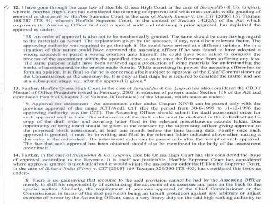 8. We have heard both sides and we have also perused the materials on record. There is no dispute that approvals were given by the Addl. CIT in a huge number of cases within an extremely short period of time. The requirement of statutory approval of draft assessment order is an inbuilt protection against any unjust, improper, illegal or arbitrary exercise of power of the Assessing Officer. This cannot be done in a mechanical manner, without due application of independent mind by the Addl. CIT. At this juncture, it would be worthwhile to reproduce the two approval letters in the present appeals for the sake of clarity:
