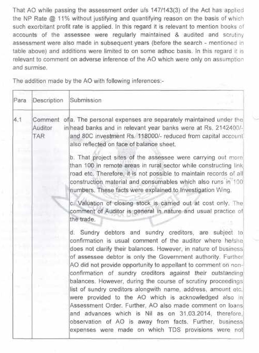 Further, while estimating the profit percentile at 11% AO made reliance on profit estimated @11% in AY 2021-22 which is highly unjustified. In AY 2021-22 assessee himself offered profit percentile around 10% as per statement held u/s 132(4) for AY 2021-22 & AY 2022-23, with prior condition no adverse inference is drawn in years prior to AY 2021-22. Therefore, the whole additions on account of increase in profit percentile was made based on the statement of assessee which is not sustainable in the peculiar circumstances and in the eyes of law.