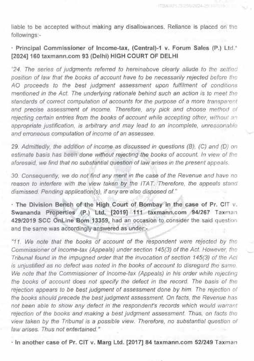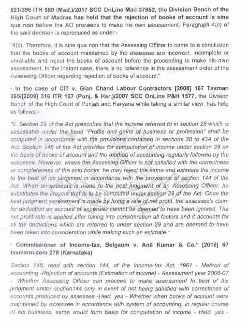 “24. The series of judgments referred to hereinabove clearly allude to the settled position of law that the books of account have to be necessarily rejected before the AO proceeds to the best judgment assessment upon fulfillment of conditions mentioned in the Act. The underlying rationale behind such an action is to meet the standards of correct computation of accounts for the purpose of a more transparent and precise assessment of income. Therefore, any pick and choose method of rejecting certain entries from the books of account while accepting other, without an appropriate justification, is arbitrary and may lead to an incomplete, unreasonable and erroneous computation of income of an assessee.