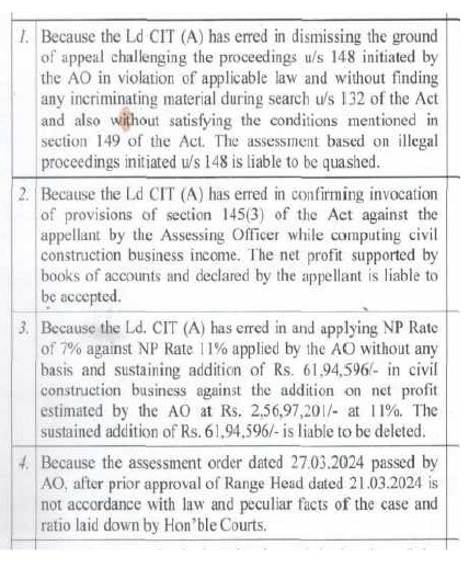 (K) In assessment year 2016-17 also, the assessee, in appeal vide I.T.A. No.349/Lkw/2025; has raised dispute regarding validity of initiation of proceedings u/s 147 of the Act and validity of approval under section 148B of the Act. Further the assessee has also disputed the estimation of net profit rate @7% in the impugned order of learned CIT(A), which is higher than the net profit rate disclosed by the assessee in the return of income. In Revenue’s appeal for assessment year 2016-17 vide I.T.A. No.399/Lkw/2025, only one issue has been raised which is regarding the net profit rate. Revenue has appealed against scaling down of the net profit rate from 11% as per assessment order to 7% as per impugned appellate order of learned CIT(A). In assessment year 2017-18 also, the assessee, in appeal vide I.T.A. No.350/Lkw/2025, has raised dispute regarding validity of initiation of proceedings u/s 147 of the Act and validity of approval under section 148B of the Act. Further, the assessee has also disputed the estimation of net profit rate @7% in the impugned order of learned CIT(A), which is higher than the net profit rate disclosed by the assessee in the return of income. In Revenue’s appeal for assessment year 2017-18 vide I.T.A. No.460/Lkw/2025, only one issue has been raised which is regarding the net profit rate. Revenue has appealed against scaling down of the net profit rate from 11% as per assessment order to 7% as per impugned appellate order of learned CIT(A). In assessment year 2018-19, in the assessee’s appeal, vide I.T.A. No.351/Lkw/20205, once again the validity of initiation of proceedings under section 147 of the Act, and validity of approval granted under section 148B of the Act have been challenged. The assessee has also appealed against estimation of net profit rate @7% in the impugned appellate order. In assessment year 2019-20, the assessee, in appeal vide I.T.A. No.352/Lkw/2025, has once again raised dispute regarding validity of initiation u/s 148 of the Act and validity of approval under section 148B of the Act. Further the assessee has also disputed the estimation of net profit rate @7% in the impugned order of learned CIT(A), which is higher than the net profit rate disclosed by the assessee in the return of income. In Revenue’s appeal for assessment year 2019-20 vide I.T.A. No.402/Lkw/2025, only one issue has been raised which is regarding the net profit rate. Revenue has appealed against scaling down of the net profit rate from 11% as per assessment order to 7% as per impugned appellate order of learned CIT(A).
