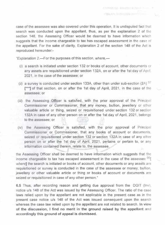 (F) In the assessee’s appeal for assessment year 2014-15, the assessee has also disputed the initiation of proceedings under section 147 of the Act. This issue was also raised by the assessee during appellate proceedings before the learned CIT(A). The learned CIT(A) however dismissed the assessee’s plea, taking recourse to Explanation -2 to Section 148 of the Act. The relevant portion of the order of the learned CIT(A) is reproduced as under:
