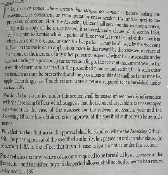 147. If any income chargeable to tax, in the case of an assessee, has escaped assessment for any assessment year, the Assessing Officer may, subject to the provisions of sections 148 to 153. assess or reassess such income or recompute the loss or the depreciation allowance or any other allowance or deduction for such assessment year (hereafter in this section and in sections 148 to 153 referred to as the relevant assessment year Explanation.—For the purposes of assessment or reassessment or recomputation under this section, the Assessing Officer may assess or reassess the income in respect of any issue, which has escaped assessment, and such issue comes to his notice subsequently in the course of the proceedings under this section, irrespective of the fact that the provisions of section 148A have not been complied with. “