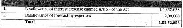 5. It was submitted that Ld. CIT(A) erred in confirming the decision of AO in disallowing the interest expenses of Rs. 1,49,52,658/- claimed under Section 57 of the Act without appreciating the fact that the loan against which such interest was paid was availed for the purpose of earning income chargeable to tax under the head “Income from other sources” and was thus duly allowable.