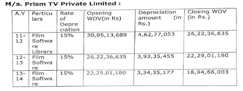38. Thus, respectfully following the judgment of the Hon’ble Tribunal on the identical issue, as involved in the instant case, as the Assessee herein has also claimed the depreciation on ‘Film Software Library’ which was allowed @ 15% instead of 25% to the extent of Rs. 13,57,40,506/- @25% on opening WDV (Rs. 54,29,62,024/-) on the basis of valuation report prepared by M/s. Ernst & Young Pvt Ltd.