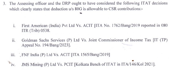 5. Thus, the solitary issue raised before us is whether the AO justified in rejecting claim u/s 80G of the Act on the expenses incurred on account of Corporate Social Responsibility (CSR).