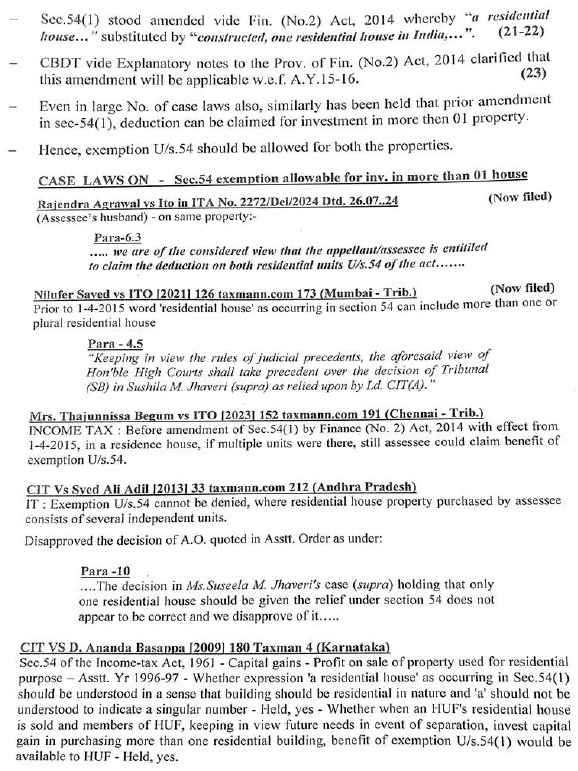 4.1 That in view of the submissions, evidences furnished and the settled legal position as per case laws, the deduction u/s.54 should have been allowed for Rs.64,23,843.”