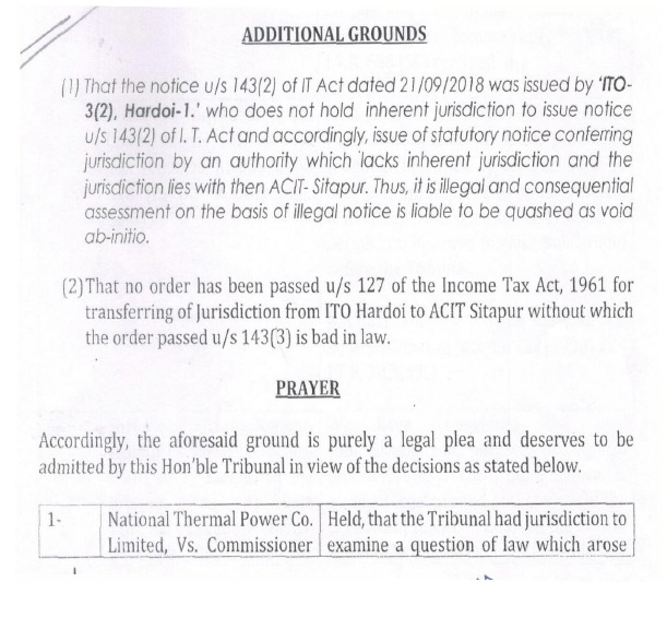 1.That the order has been passed u/s 143(3) without rejecting any books of accounts and the addition has been made u/s 68 of the Income tax Act, 1961. That the addition u/s 68 cannot be made where sale has been offered for taxation. (JKGExports v. ACIT Del – Third Member –  ). The other ruling on relief on section 68 is enclosed.