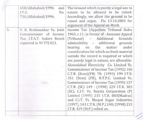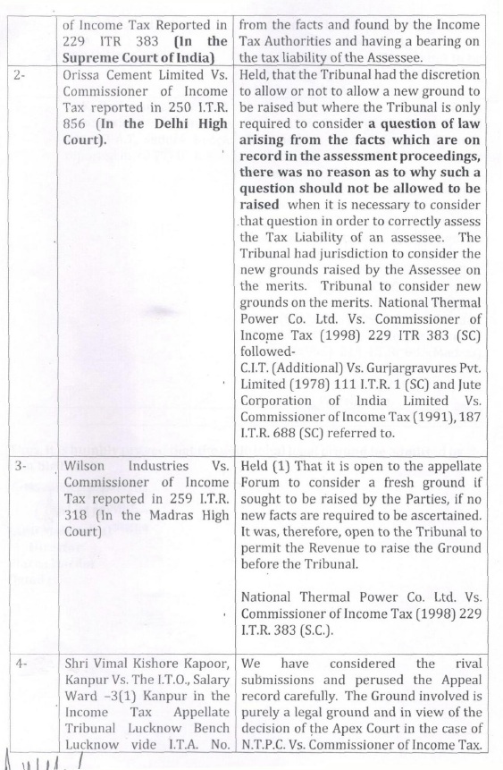 (C) In the course of appellate proceedings in Income Tax Appellate Tribunal, the learned Counsel for the assessee filed paper book and also filed compilation of following case laws in support of assessee’s appeal; the particulars of which are as under: