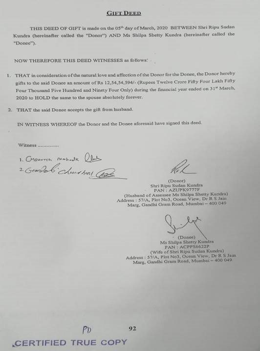 “With regard to the para – 7 of your letter dated 02.03.2022, a gift has been received from my husband Shri Ripusudan Kundra for the year ended 31st March, 2020 relevant to the A.Y 2020-21″