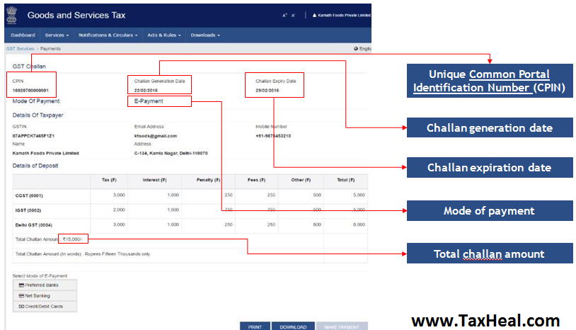 screen shots of generated Challan