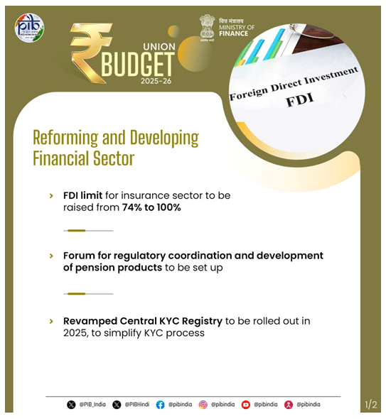 FORUM FOR REGULATORY COORDINATION AND DEVELOPMENT OF PENSION PRODUCTS TO BE SET UP: UNION BUDGET 2025-26ROLL OUT OF REVAMPED CENTRAL KYC REGISTRY PLANNED IN 2025