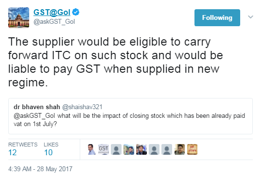 itc on stock of vat
