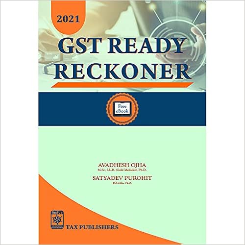 GST READY RECKONER 2021 by TAX PUBLISHERS By CA Satbir Singh | July 13, 2021 0 CommentGST READY RECKONER 2021 by TAX PUBLISHERS by Ph.D.] AVADHESH OJHA [M.Sc., LL.B. (GOLD MEDALIST) (Author), F.C.A.] SATYADEV PUROHIT (B.Com. (Author)BUY ONLINE CLICK HERE