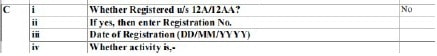 7. We have heard the rival contentions and perused material available on record. The bench noted that in this case the benefit u/s. 11(1)(a) claimed by the assessee was not considered as the assessee while filling the ITR did not mention 12A details reads as under :
