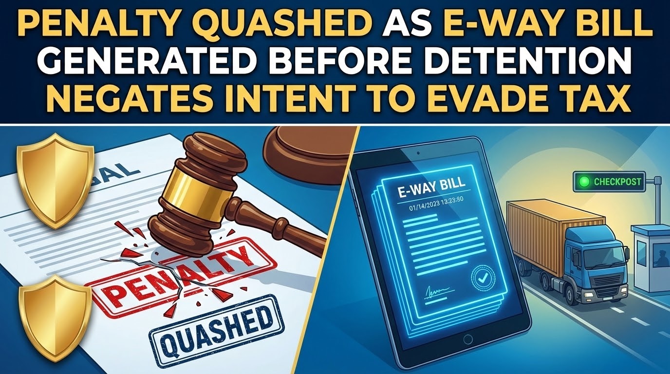 Penalty Quashed as E-Way Bill Generated Before Detention Negates Intent to Evade Tax Issue Whether the imposition of penalty under Section 129(3) of the CGST Act is valid when the e-way bill was not physically produced at the exact moment of interception, but was shown to have been generated prior to the detention of goods,… Read More »