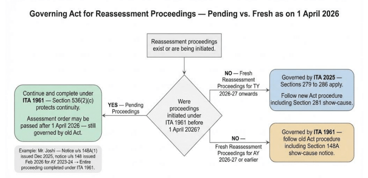 Q5.10 If reassessment proceedings for an earlier assessment year were initiated under Section 147/148 of the old Act and are pending as on 01.04.2026, will they continue under the old Act?