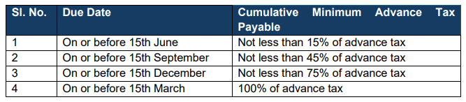 1 On or before 15th June Not less than 15% of advance tax
